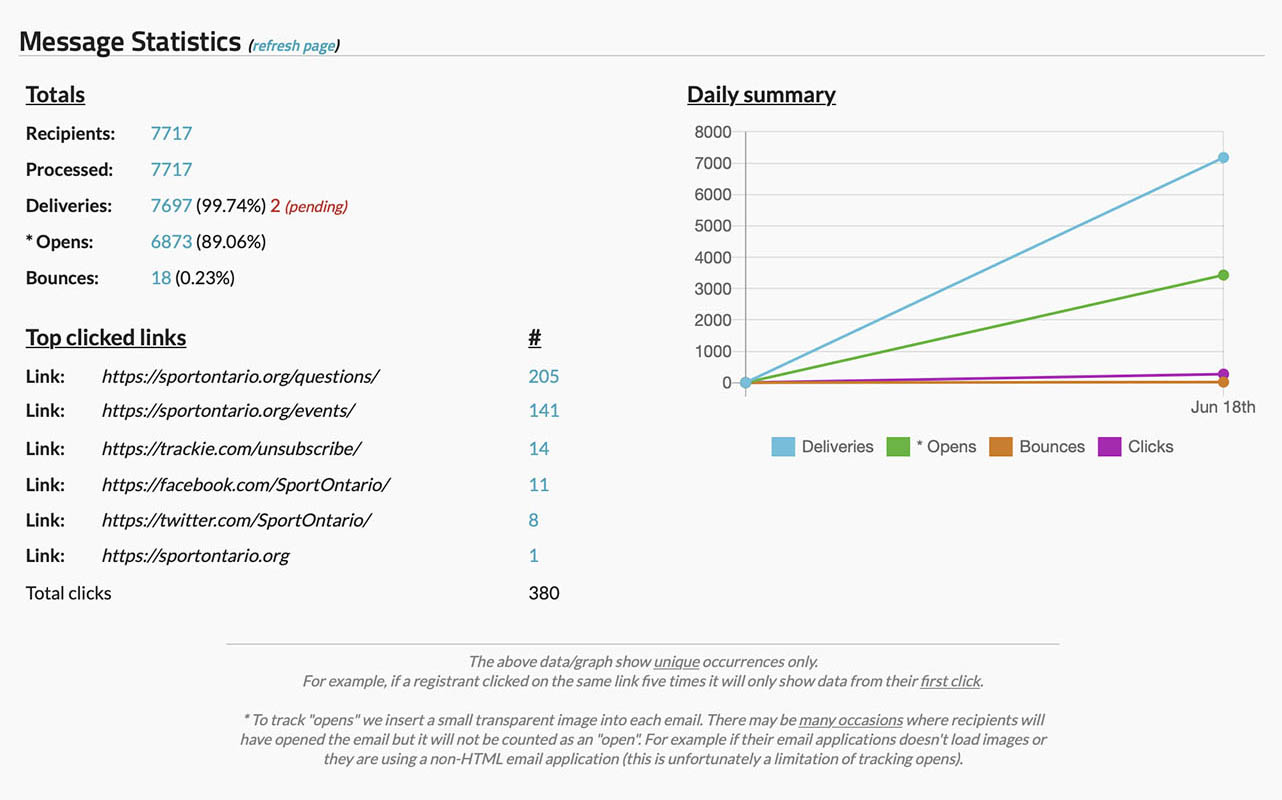 Not every message needs to go to everyone. Our Mass Email feature allows you to filter and target specific recipients from your View Registrants page — for example, only athletes, coaches, parents, or volunteers. You can also filter by any information you collect from your registrants — such as registration date, membership type, age category, club, or custom form questions.