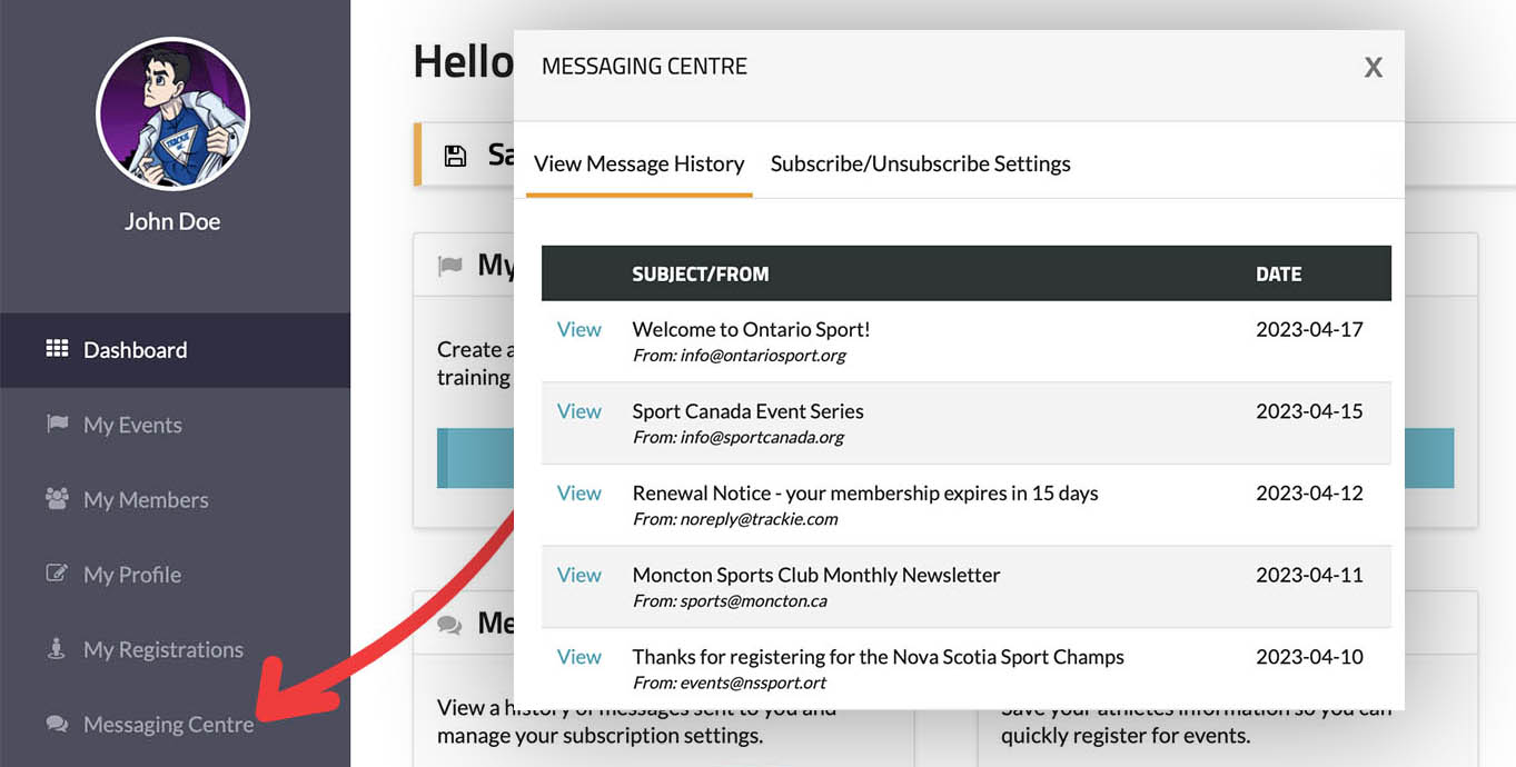 Every registrant has access to their own Messaging Centre, where they can view all communications sent to them in one convenient place.